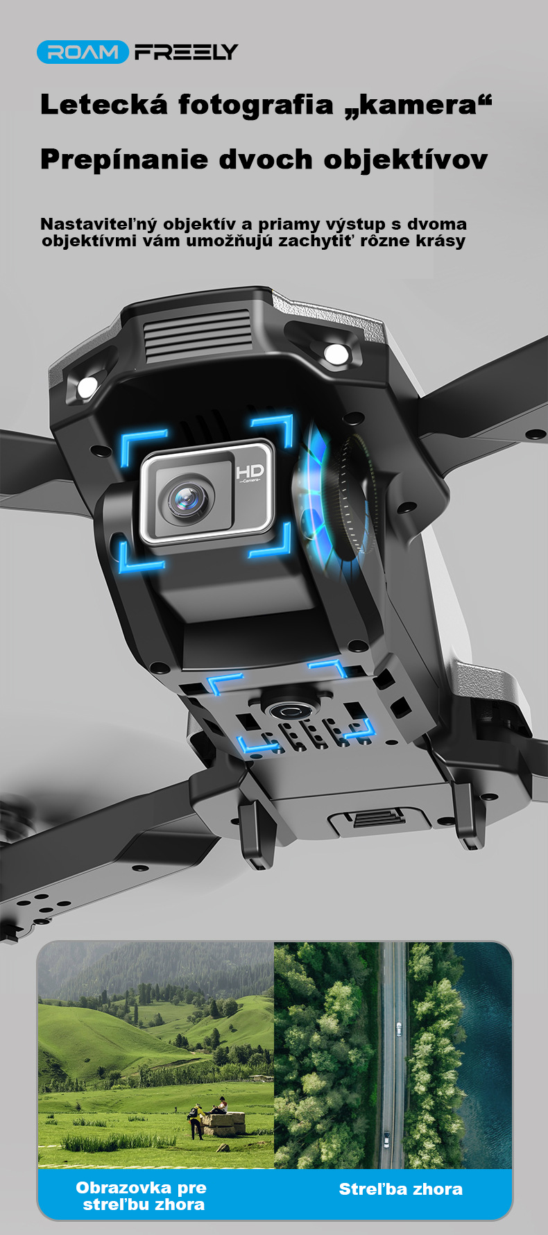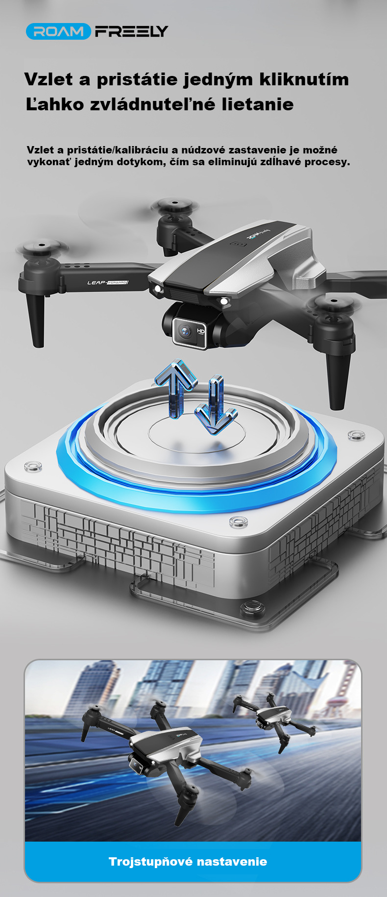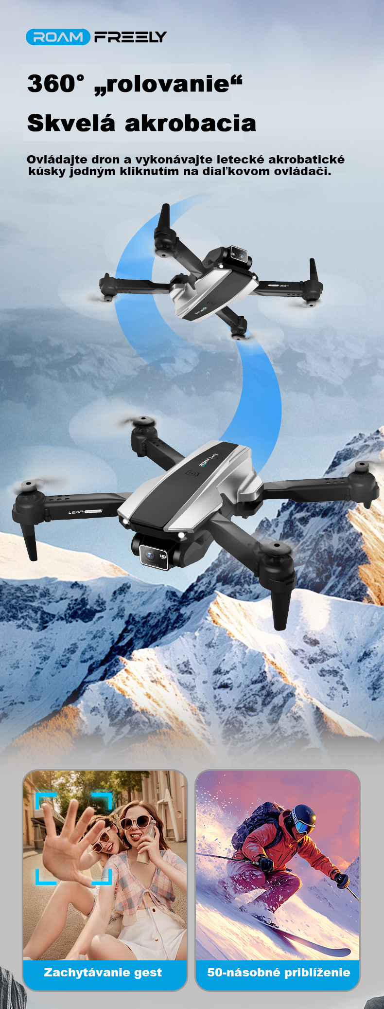 Dron s vysokým rozlíšením, optickým polohovaním pri vznášaní, bezhlavým režimom a 360° otáčaním
