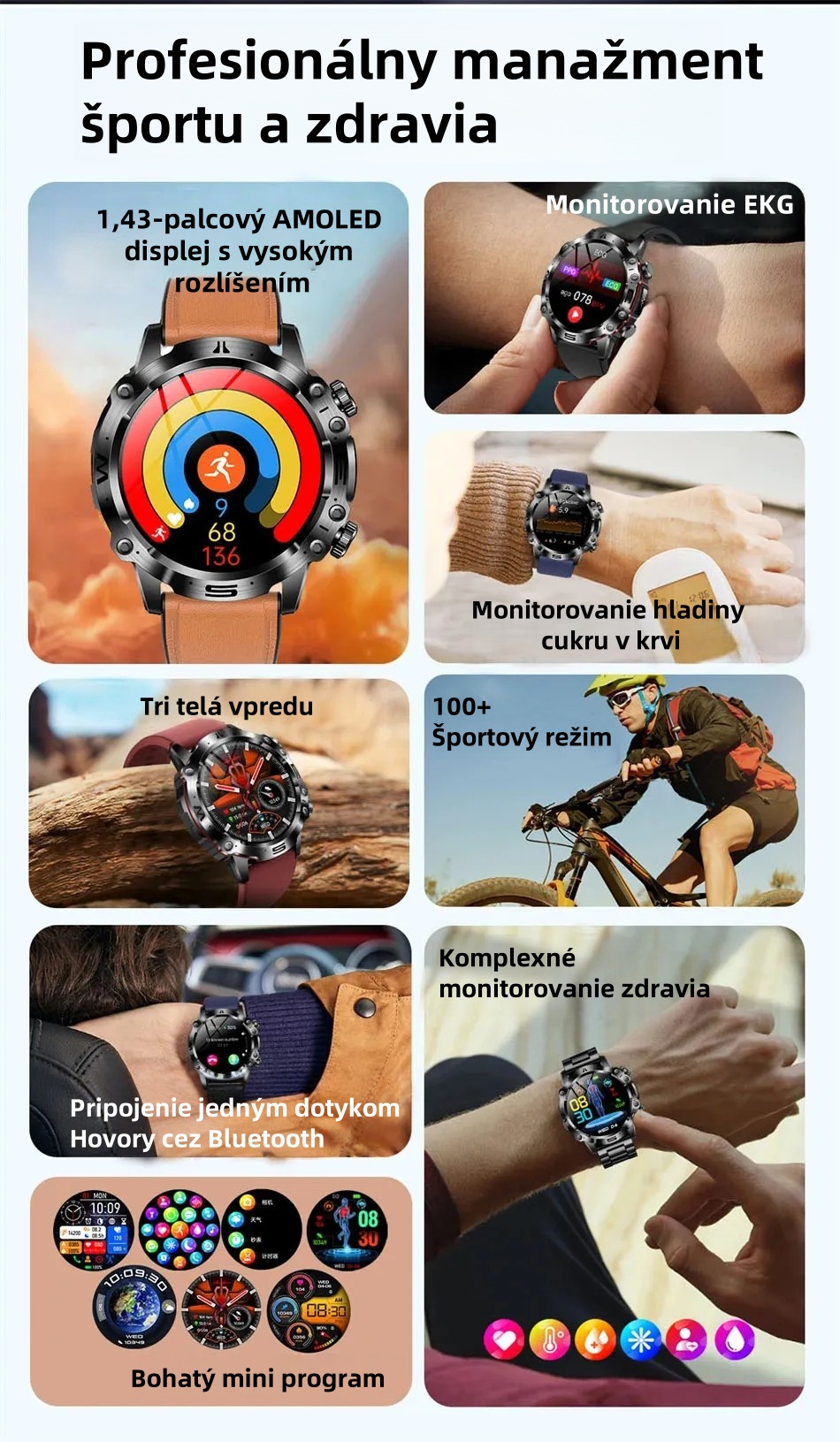 2026 AI chytré lekárske hodinky 3.0 | 24h glukóza, srdcový tep, šport, spánok, PPG, EKG, lipidy, kys. močová, teplota, AI + Bluetooth