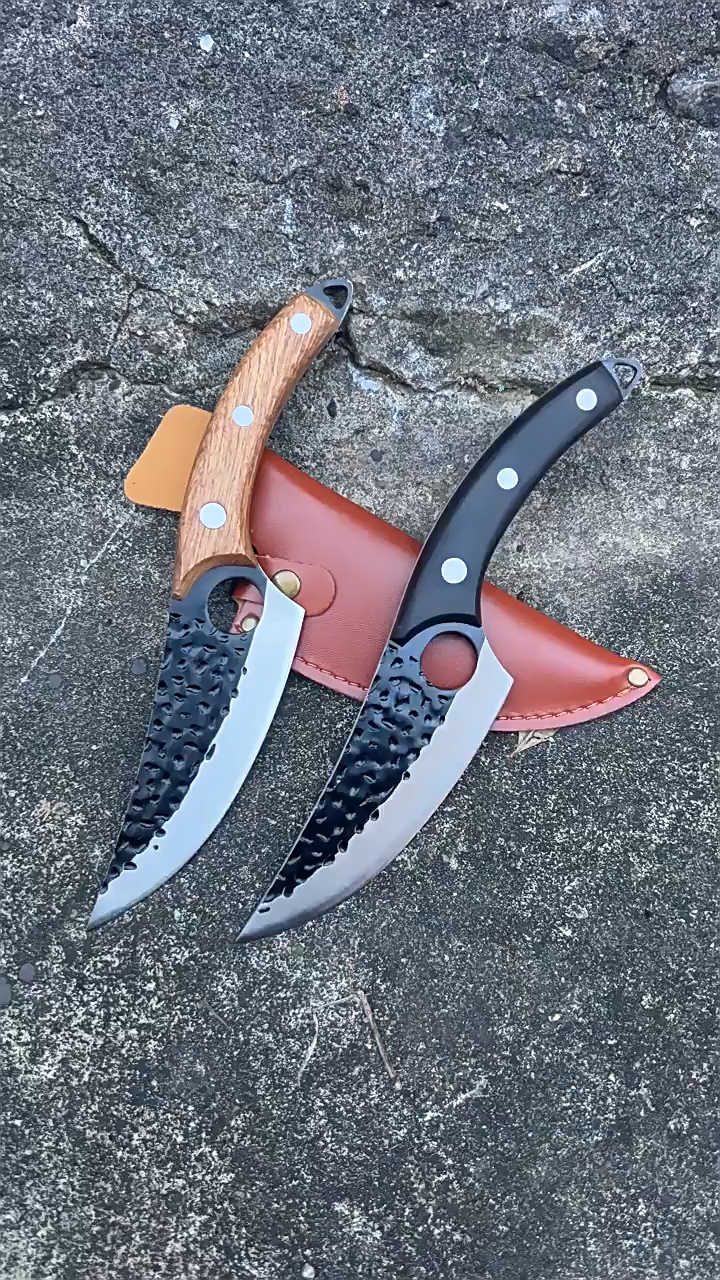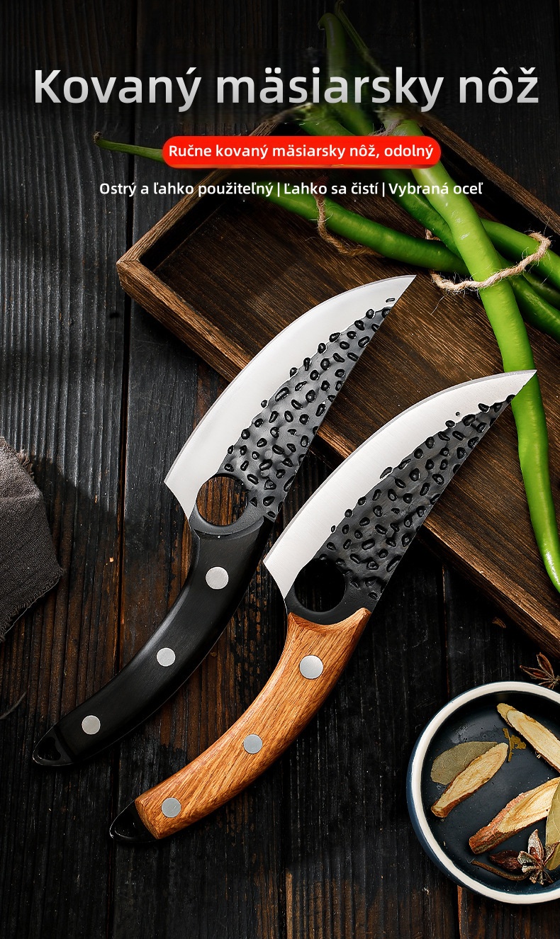 Hľadáte nôž, ktorý je ostrý a zároveň odolný? Tento ručne kovaný mäsiarsky nôž je perfektným nástrojom na varenie! Či už krájate mäso, sekáte kosti alebo sa zaoberáte veľkými surovinami, zabezpečí vám čisté a profesionálne rezy.