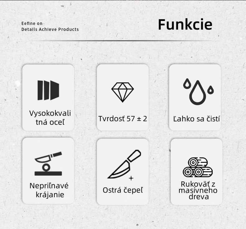 Tradičný proces brúsenia v tvare V zaručuje ostrú hranu a hladký rez. Či už ide o mäso, zeleninu alebo kosti, nôž si s tým ľahko poradí a skutočne dosiahne „pohyb noža podľa vašich predstáv“.
